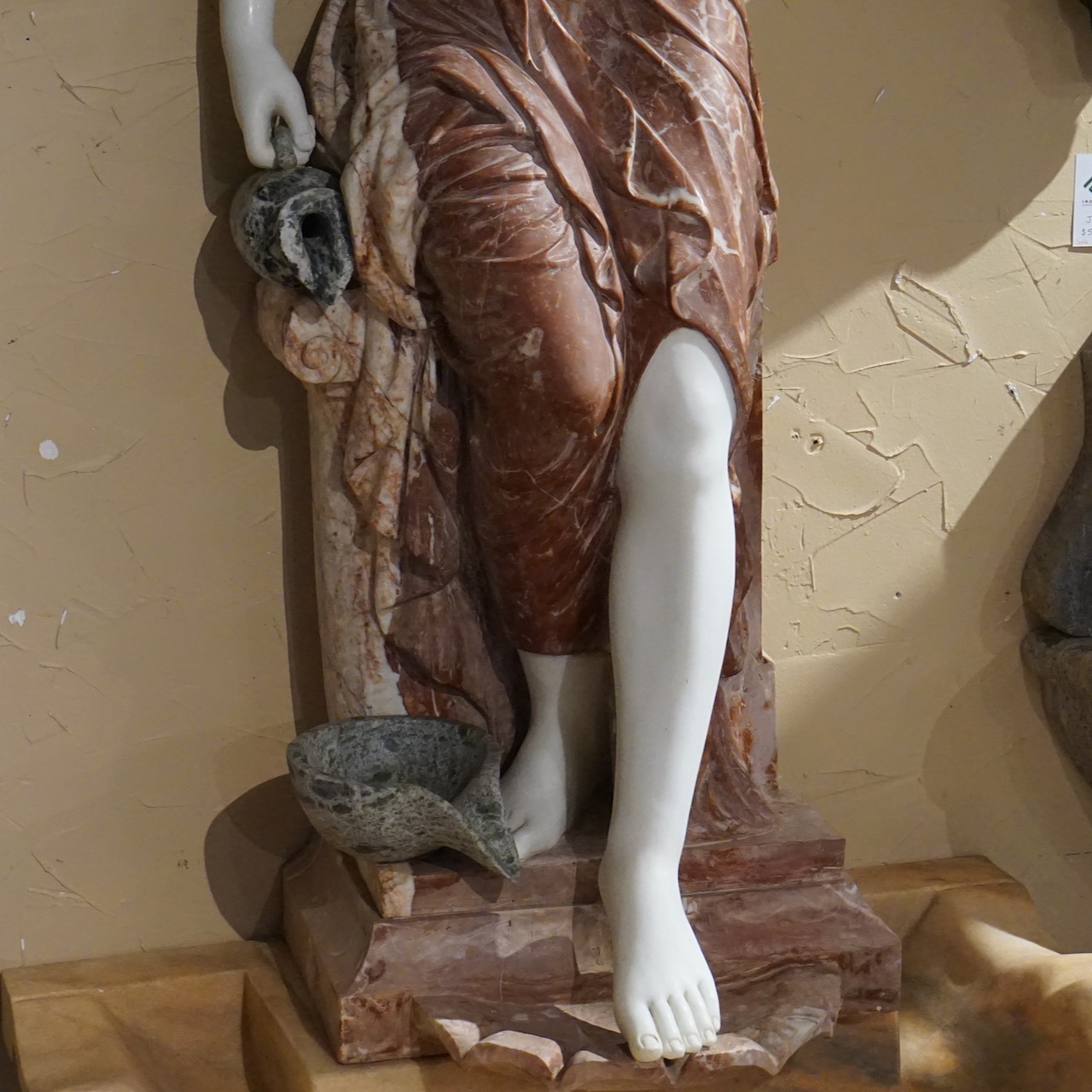 Beautiful hand carved lady wall fountain, made of solid marble. Weighs approximately 1400 lbs.