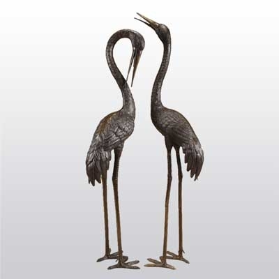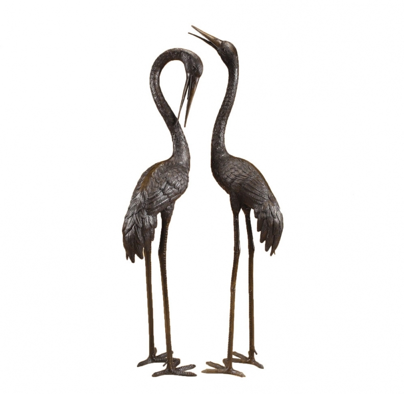 Large Bronze Crane Pair Garden Fountain