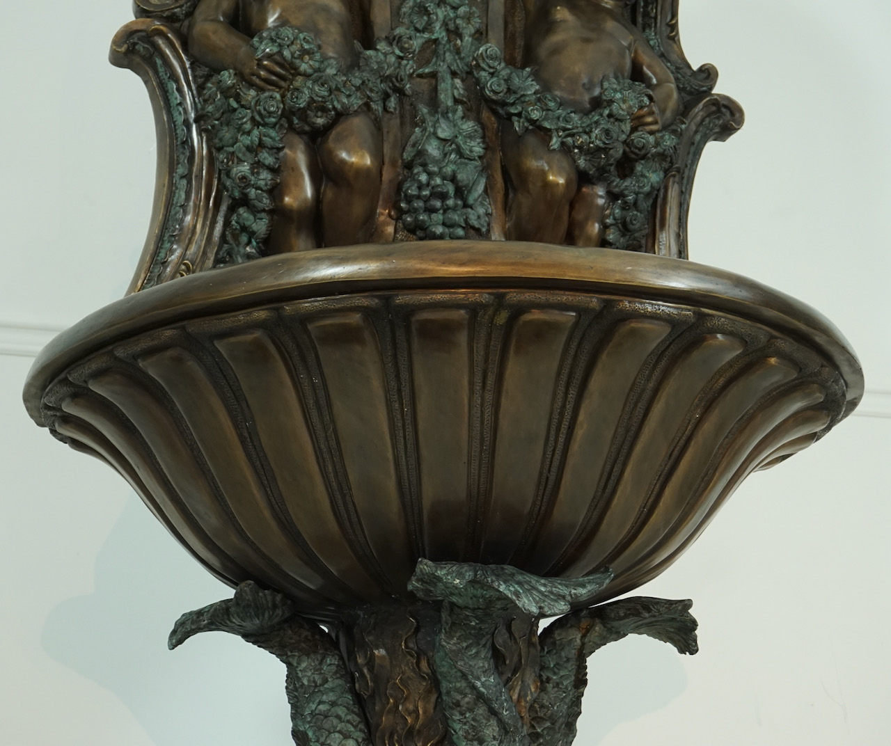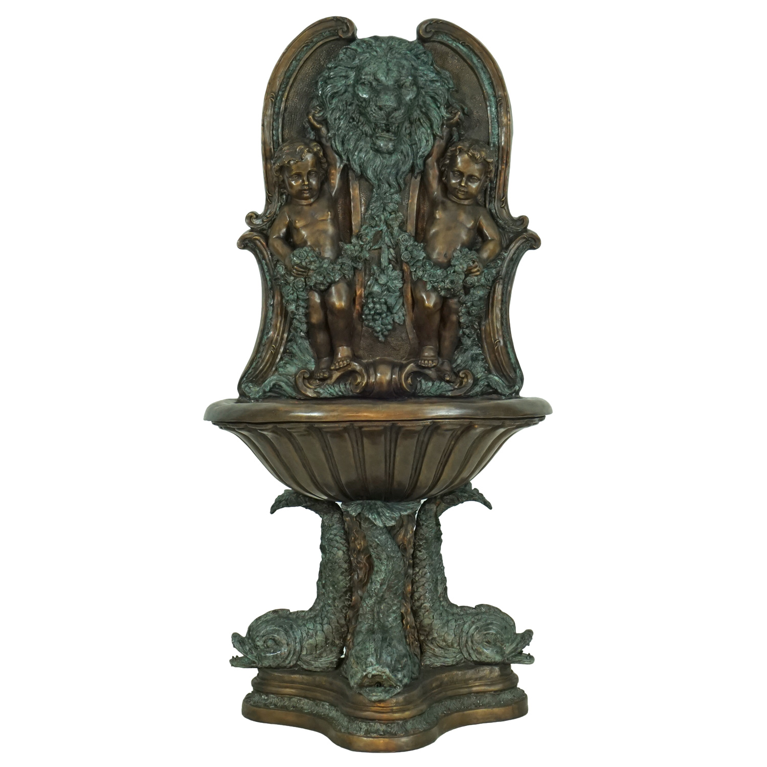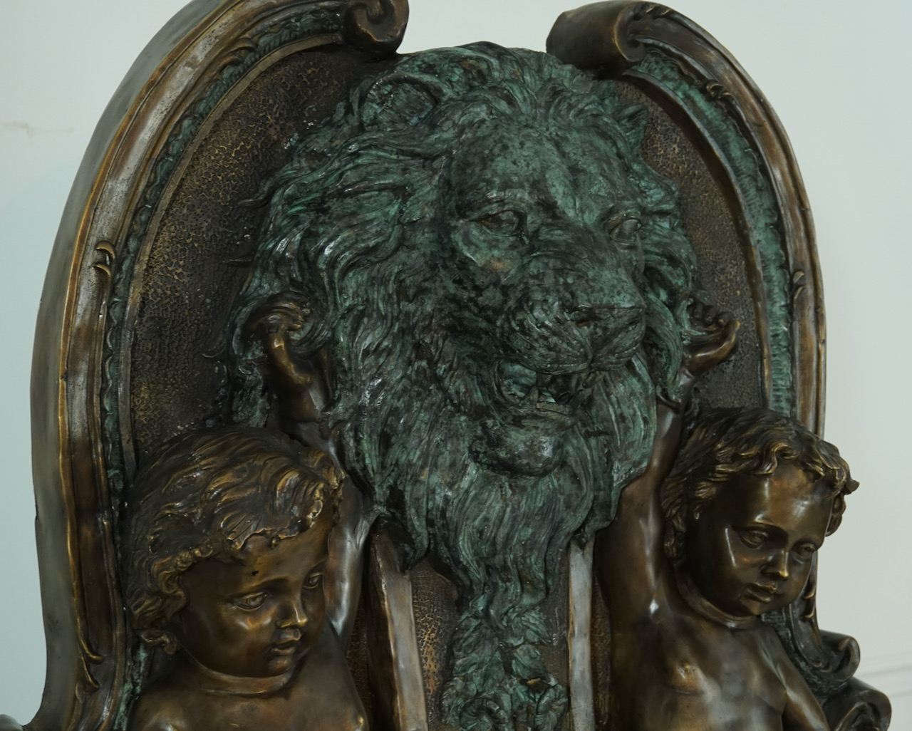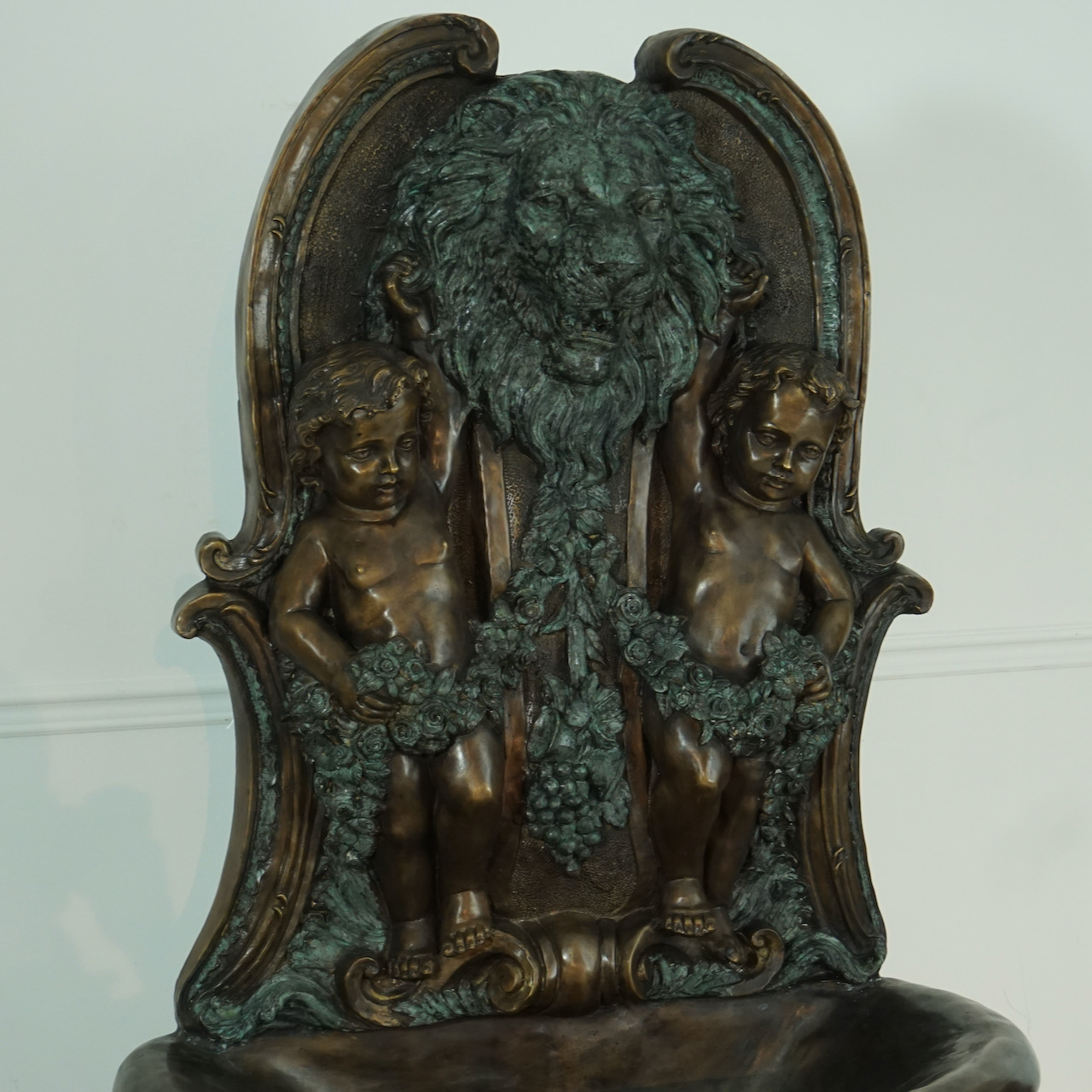 Lion and Cherub Bronze Wall Fountain